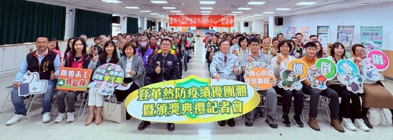 「防治登革熱 人人動起來」所以市府登革熱防治中心特訂定登革熱防疫動員獎勵計畫,今(114)年各區里共成立417隊防疫志工隊,截至11月累積動員226,433人次,清除152,278個積水容器,透過平時社區防疫志工隊動員、病媒蚊密度調查、登革熱防治相關訓練及活動參與,積極提升社區登革熱防疫成效,並評選出15組防疫志工隊及10組校園防疫績優團體,監測區第一名北區區仁愛里、第二名永康區尚頂里、第三名南區南都里、第四名新營區新北里、第五名安南區安富里、第六名中西區永華里、第七名仁德區仁義里、第八名安平區建平里、第九名東區和平里、第十名歸仁區後市里;非監測區第一名官田區隆田里、第二名柳營區重溪里、第三名龍崎區崎頂里、第四名東山區東山里、第五名玉井區玉田里;校園績優第一名北區立人國小、第二名仁德區仁德國中、第三名東區勝利國小、第四名七股區七股國小、第五名北區成功國中、第六名新營區南新國中、第七名佳里區佳里國小、第八名南區省躬國小、第九名安南區海佃國小、第十名仁德區仁德國小,由市長親自頒發奬座及禮券予以嘉獎鼓勵。
