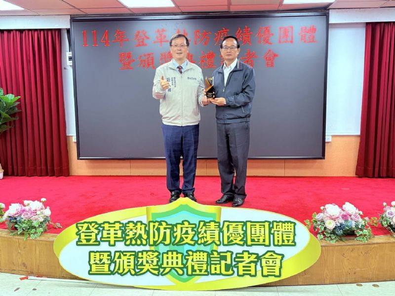 為感謝登革熱防疫團體對南市登革熱防疫工作之付出,今(16)日上午特於永華市政中心10樓小禮堂辦理「臺南市114年下半年度登革熱防疫團體暨頒獎典禮記者會」,衛福部莊人祥常務次長蒞臨致詞表示南市登革熱防治相當完善,其中建置定點醫師診所針對疑似病例積極通報,有效發現社區隱藏個案,降低病毒傳播風險,另與國家衛生研究院合作分析病媒蚊指數與風險監測,及時動員社區志工進行環境孳生源清除與衛教宣導,減少病媒蚊孳生並提升民眾防治意識等措施,給予高度肯定與鼓勵,此外與黃偉哲市長共同表揚本市各區里優秀的社區防疫志工及校園防疫績優團體的辛勞奉獻,讓南市迄今(114年)3例本土病例能有效控制防止疫情擴散,充分展現市民團結與防疫能力,維護市民健康。