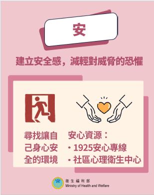 安:尋找讓自己身心安全的環境,並善用衛生福利部的「安心」資源。