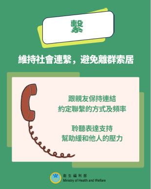 繫:與親友保持聯繫,互相聆聽、分享感受,也幫助緩和彼此的壓力。