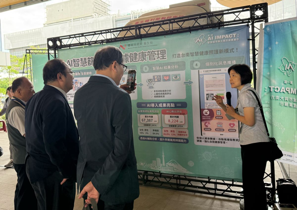 臺南市智慧健康成果再升級!「第一屆AI IMPACT:智慧城市與大南方成果展示」今(28)日在沙崙智慧綠能科學城AI創新應用大樓登場,由國家科學及技術委員會主辦,行政院政務委員、國科會主委 吳誠文 與臺南市長黃偉哲親臨參與。臺南市政府衛生局於展會中展示近年推動的智慧健康成果,包括AI影像輔助分析、健康共照雲整合服務以及智慧醫療管理系統,展現臺南在智慧健康城市的發展成果。