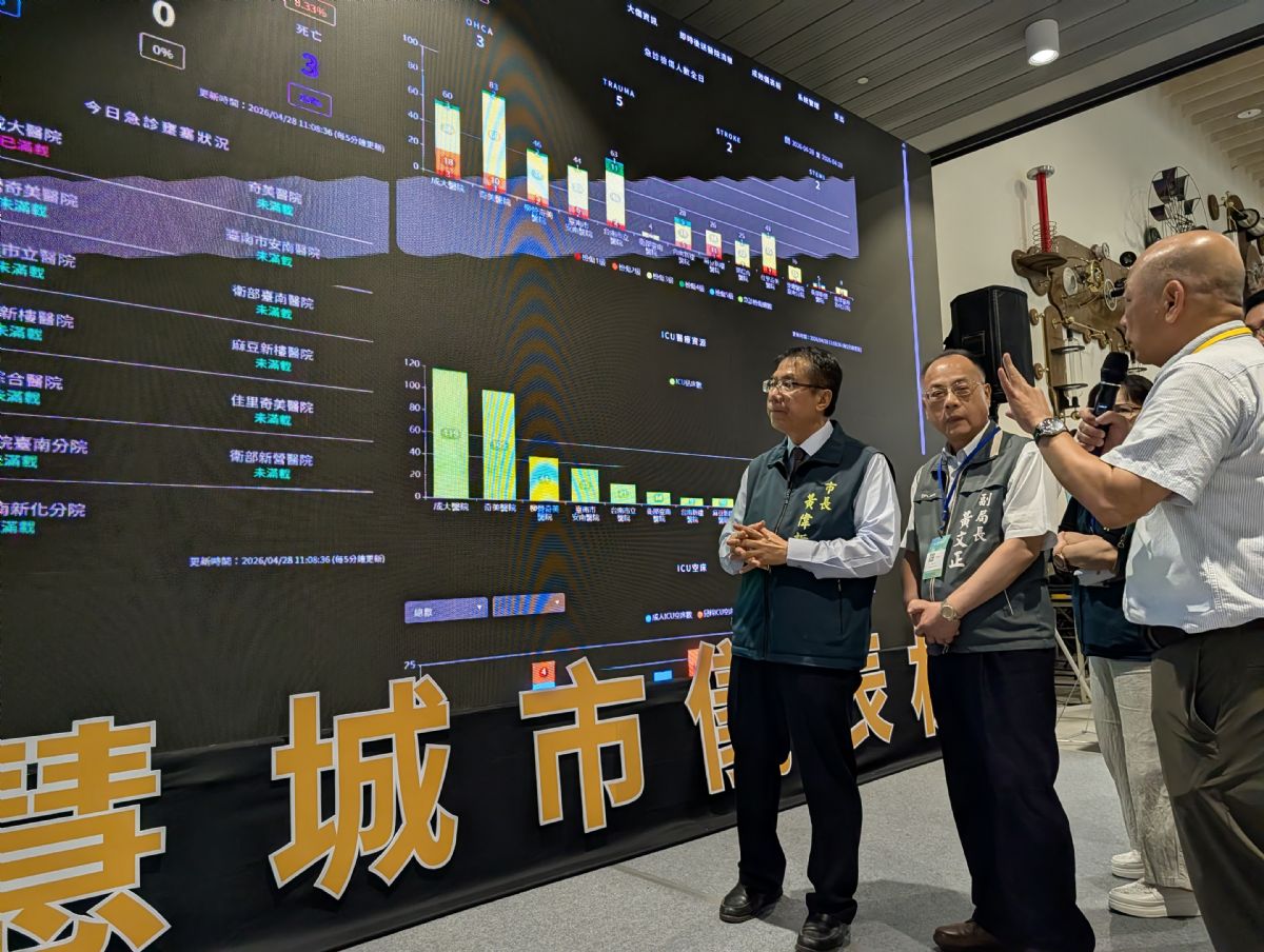 在智慧醫療治理方面,衛生局也展示「緊急醫療資訊儀表板系統」。該系統整合臺南市13家急救責任醫院的急診量能資訊,可即時掌握急診量能狀況,提供119救護人員與醫療單位作為送醫分流的重要參考,以提升緊急醫療服務效率。