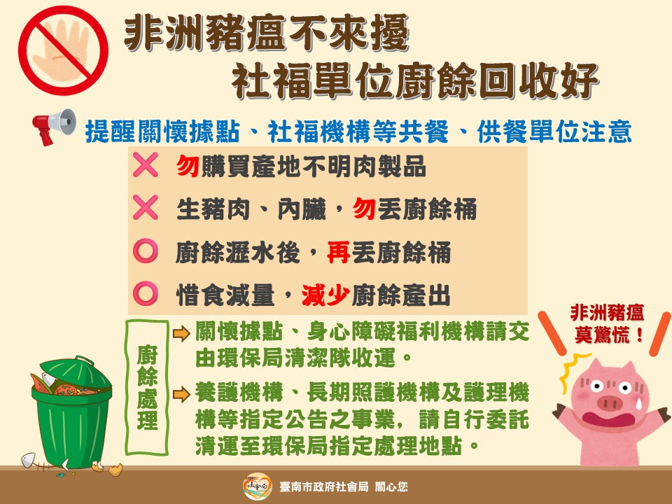 提醒關懷據點、社福機構等共餐、供餐單位注意