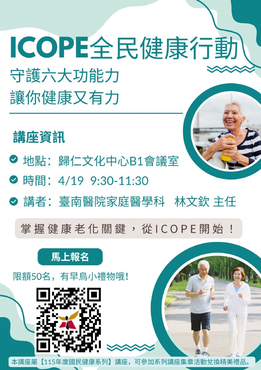 4/19歸仁文化中心ICOPE健康講座資訊