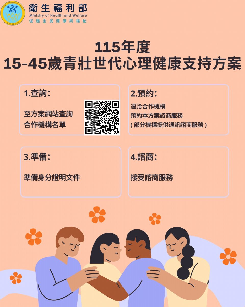 癌症不僅是生理的挑戰,背後的心理衝擊更需要專業支持,為守護癌友及其家屬的心理健康,落實全方位癌症照護,衛生福利部今年下半年將試辦「癌友心理支持方案」,提供癌友及其家屬最多12次免費的心理支持方案,最快於7月上路,先期將以肺癌、頭頸癌、乳癌病友為主,而考量其他癌別患者也有需求,計畫上路後只要經醫療團隊評估後,認定有心理諮商需求者,便可加入計畫,初步規畫由加入國健署癌症策進計畫的12家醫院執行,預計自7月起實施,至明年12月底為止,此計畫亦導入「分級照護」機制,依癌友心理風險程度提供不同強度支持,高風險個案最多可接受12次心理諮商,中風險約6次,低風險則以衛教與基礎心理支持為主,實際次數將依個別需求彈性調整。本方案亦將癌症家屬納入服務對象,協助照顧者排解長期的生理與心理疲憊,提升家庭整體的抗癌韌性,計畫之執行醫院待衛福部公告,屆時本市民眾符合計畫條件者可運用此項心理支持資源服務。
