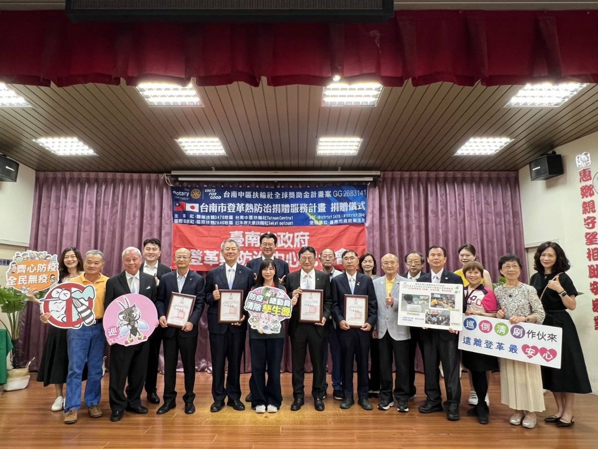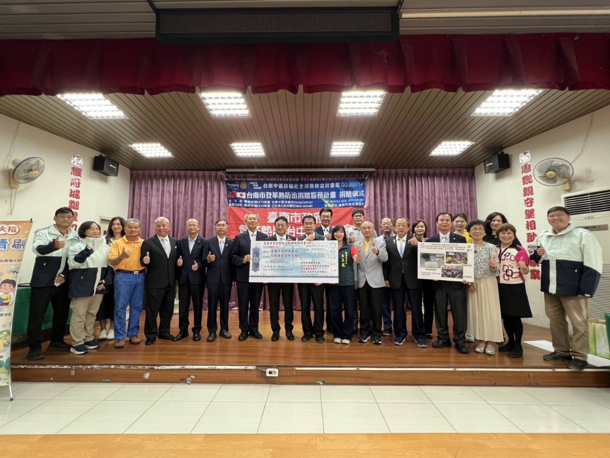 今(115)年屬聖嬰年,氣溫上升且雨量增加,以致蚊蟲孳生,加上國際間人口移動頻繁等因素,恐造成登革熱傳播迅速擴散,在此感謝台南中區扶輪社秉持為社區服務之精神,邀集國際扶輪3470地區及國際扶輪2640地區日本堺大泉扶輪社辦理「2025-26 國際扶輪全球獎助金Global Grant專案(GG 2683141)-台南市登革熱防治捐贈服務計畫」,由台南中區扶輪社社長吳平昆代表捐贈新臺幣94萬1,000元整,吳平昆社長致詞時表示,對於能再次與臺南市政府合作精進登革熱防治量能感與有榮焉。