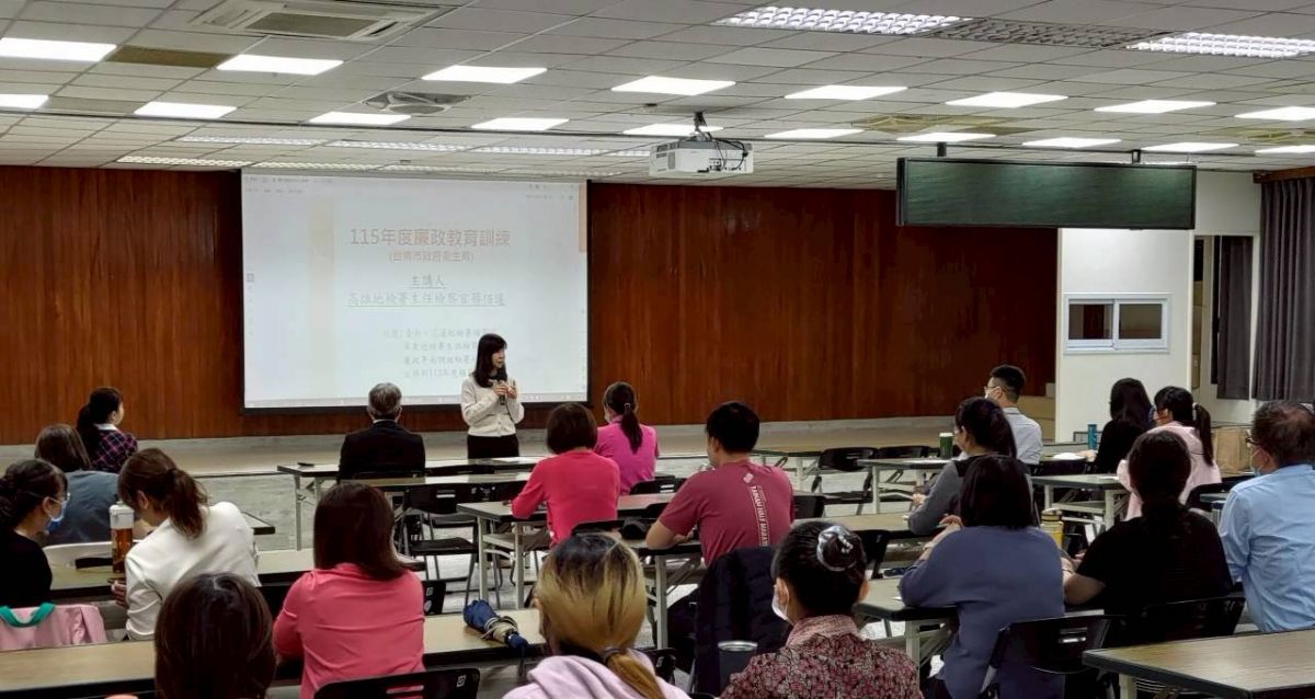 臺南市政府衛生局115年3月4日舉辦115年度廉政教育訓練暨公益揭弊者保護法宣導課程,邀請臺灣高雄地方檢察署蔡佰達主任檢察官擔任講座,由局長親自主持、現場互動熱絡、學習氣氛濃厚。