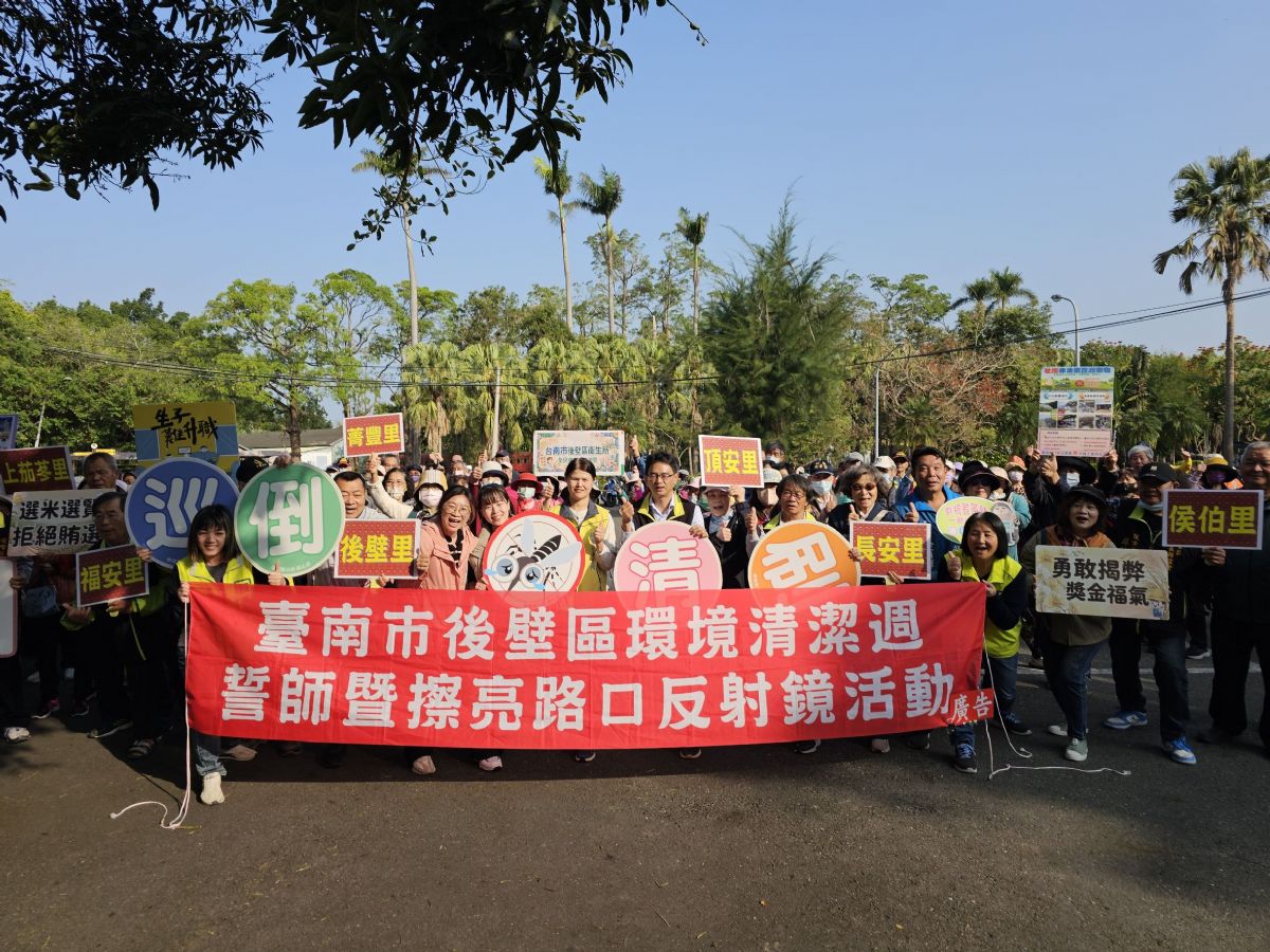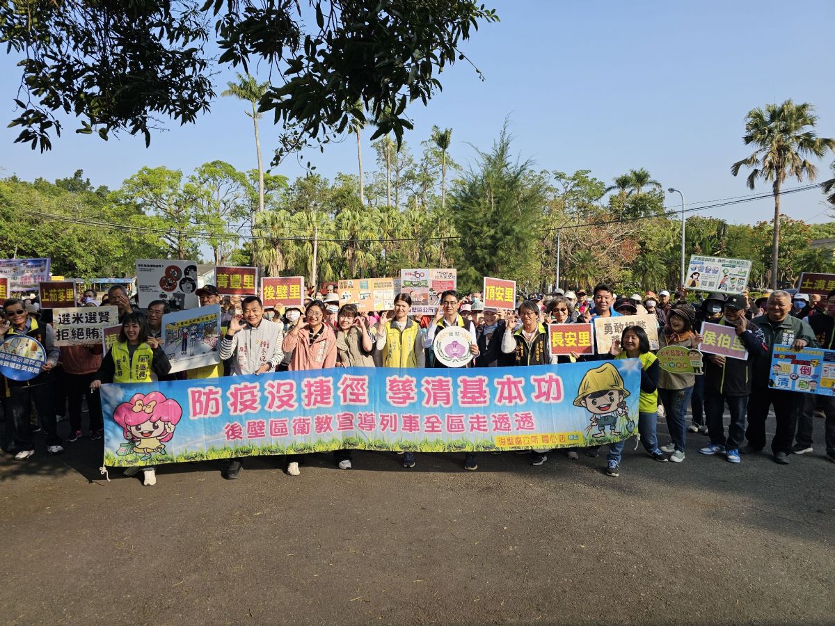 面對即將到來的登革熱流行季節,後壁區公所於115年3月7日於烏樹林小火車站舉行「115年後壁區登革熱誓師暨巡檢健走活動」,由李至彬區長主持,市府長官蒞臨指導,結合轄內里長、防疫志工及各界代表,共同宣示「防疫大團結,蚊蟲全消滅」決心,展現基層全面動員的行動力。