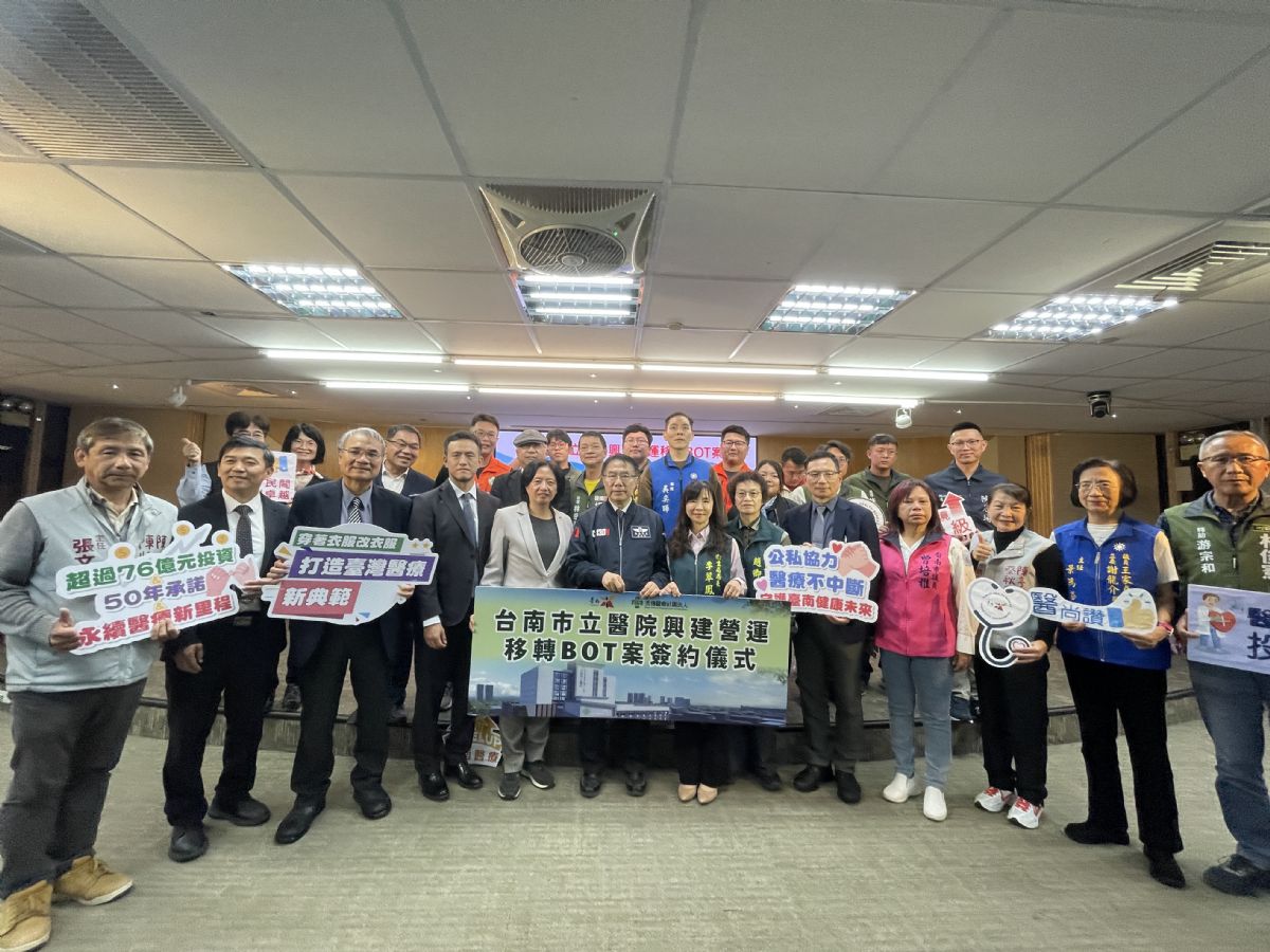 本次簽約儀式在黃偉哲市長、衛生局李翠鳳局長、秀傳醫療社團法人黃士維董事長、現任市立醫院蔡良敏院長,以及多位市議員、里長的共同見證下圓滿完成。臺南市政府將持續以市民健康為核心,透過穩健的政策規劃與公私協力,打造永續、友善且具前瞻性的醫療照護環境,守護每一位市民的健康未來。