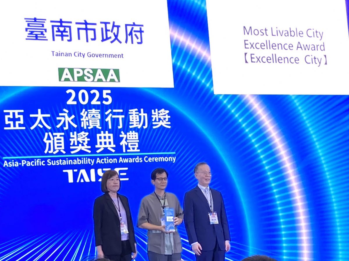 臺南市再添國際榮耀!由台灣永續能源研究基金會主辦的「2025第四屆亞太暨台灣永續行動獎」(APSAA)今(11)日下午於台北世貿一館頒獎,表揚各界推動聯合國17項永續發展目標(SDGs)的成果。臺南市在激烈競爭中脫穎而出,勇奪亞太區城市類最高榮耀「宜居永續城市獎-Excellent City」,成為典禮焦點,由副秘書長殷世熙代表出席受獎。