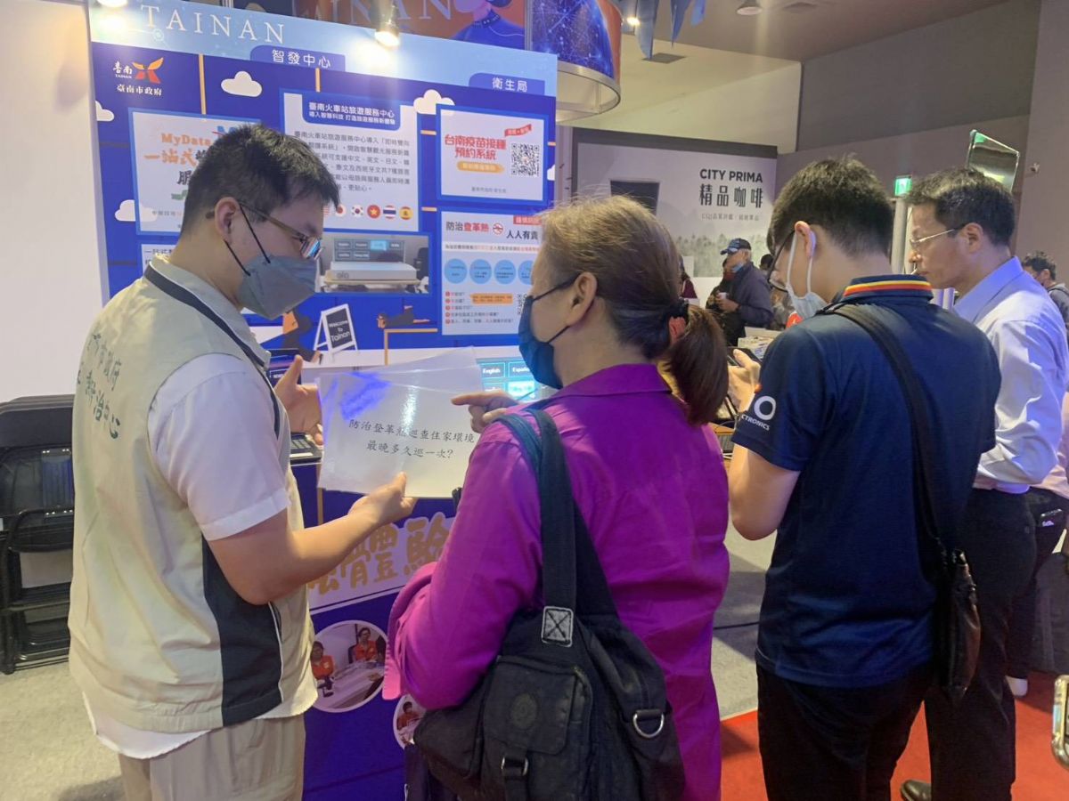 「114台南資訊月─智霸AI科技展」今(21)日至24日共4天,於大臺南會展中心特展區盛大登場。臺南市政府登革熱防治中心以「科技提升防治效率」為主軸參與展出,介紹本市推動的三大智慧防疫工具,包括 LINE@志工登革熱巡檢平台、民眾自主通報TOCC問卷系統以及無人機巡查應用成果。三項系統皆以科技運用來提升社區巡檢效率、強化疫情掌握及改善高風險環境為核心目的,展區吸引大批市民駐足詢問,互動情形熱烈。