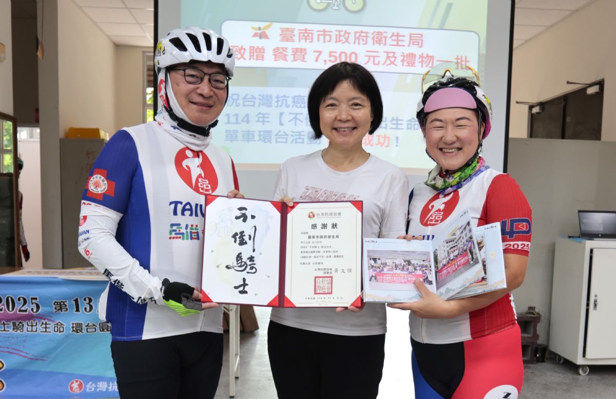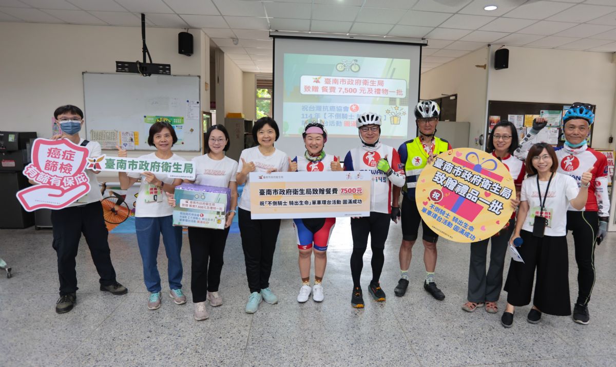 臺南市政府衛生局今(8)日熱烈歡迎「不倒騎士 騎出生命」公益單車環島隊伍抵達臺南。活動由台灣抗癌協會主辦,號召全台癌友與公益騎士共同踏上環島之旅。活動自11月2日至11日舉行,由50位癌友與志工騎士挑戰全程1,100公里,用行動傳遞「勇敢抗癌、不倒精神」,展現生命的韌性與希望。