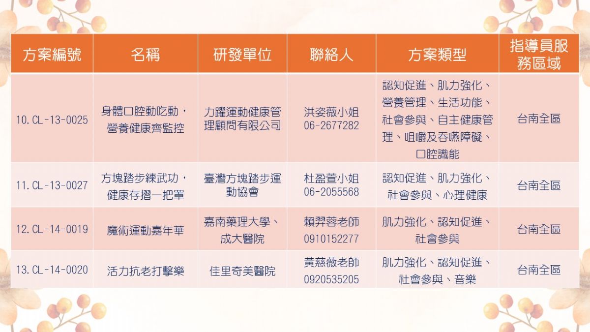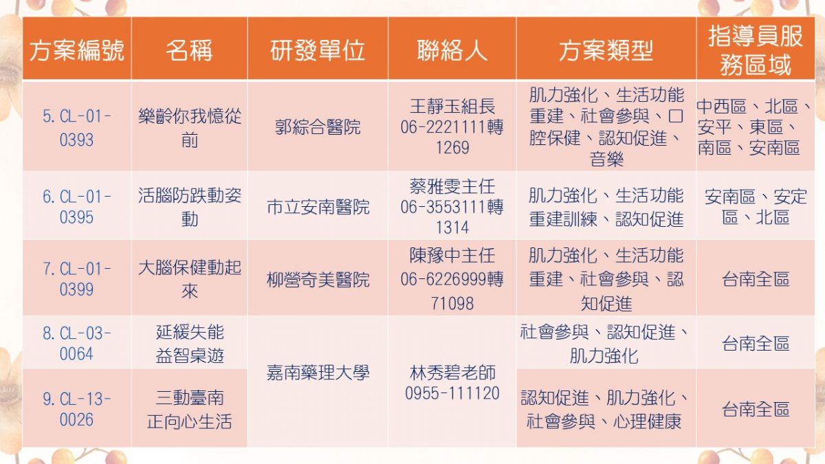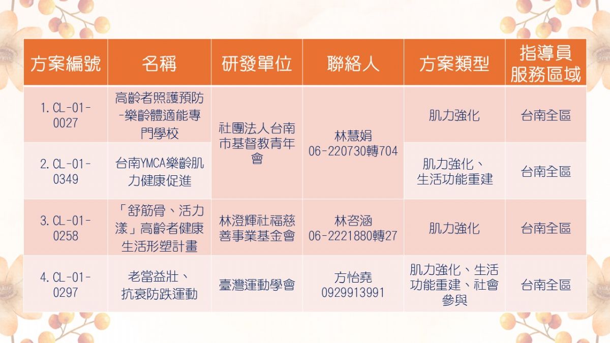 預防及延緩失能照護方案單位及聯絡人名單3