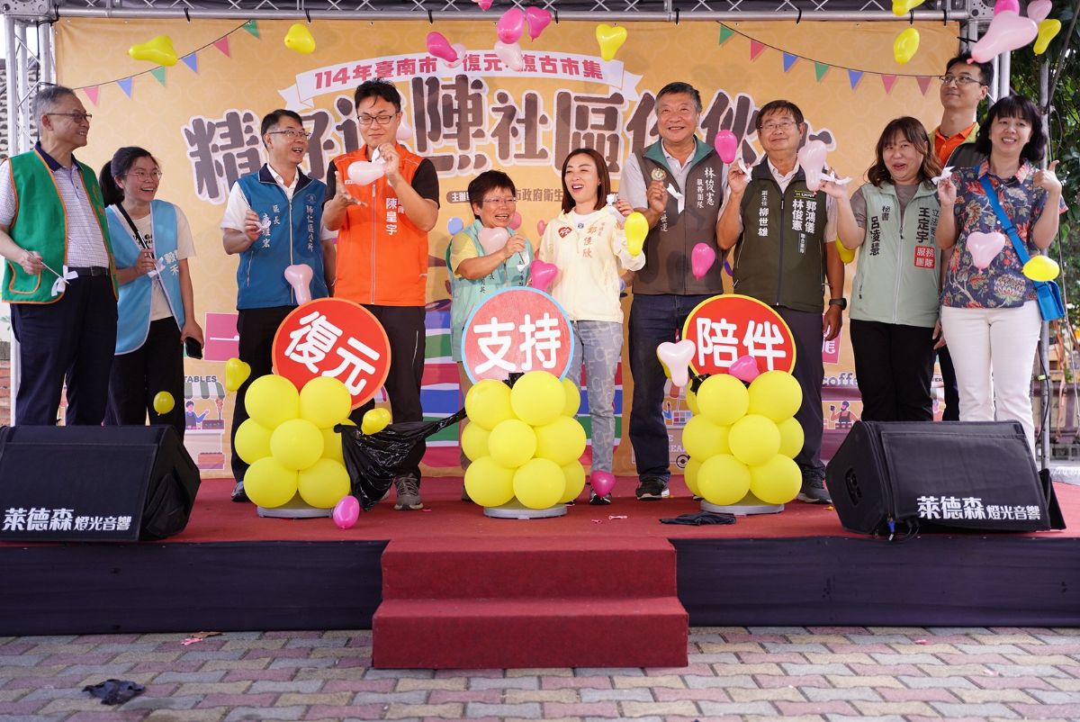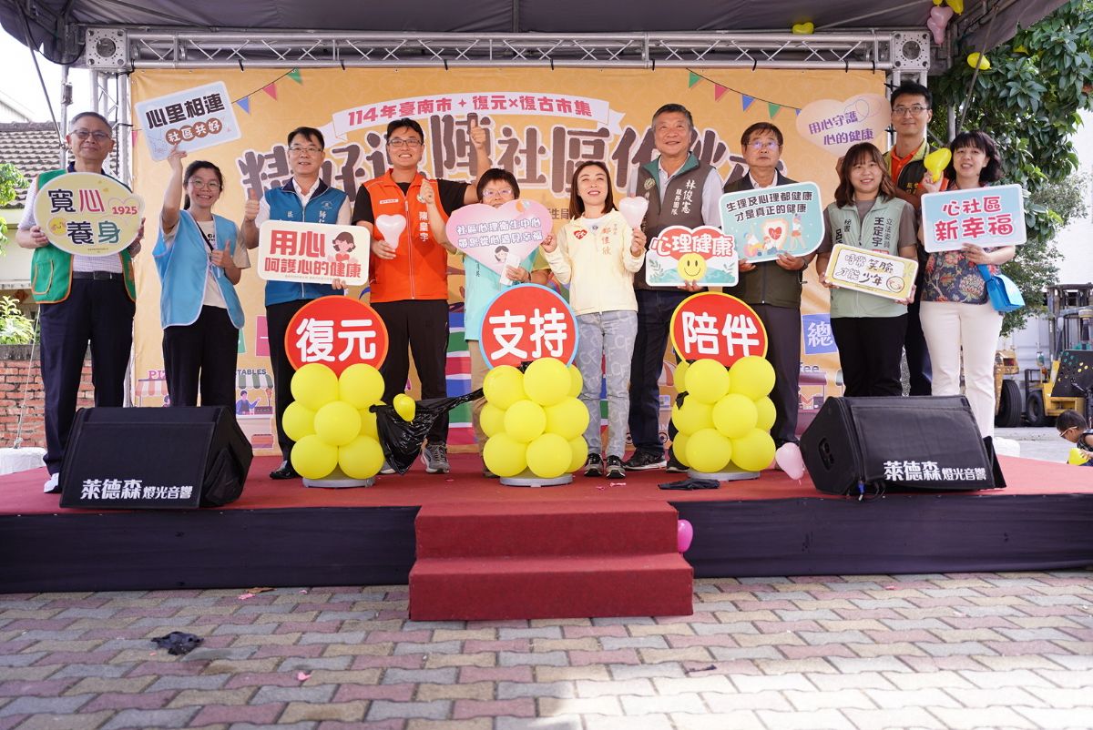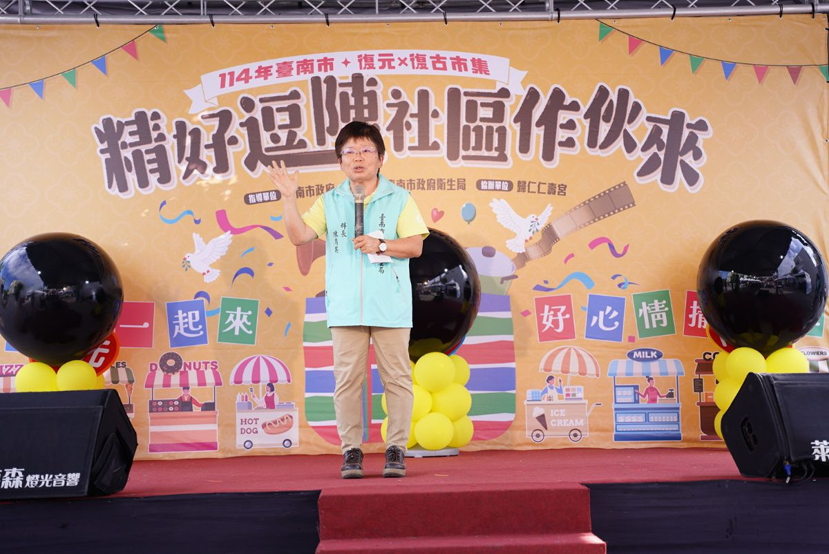 因應關廟社區心理衛生中心成立週年,特於114年11月1日(星期六)下午2時,假歸仁仁壽宮廣場舉辦「精好逗陣 社區作伙來」復古×復元市集,活動由私立育仁幼兒園活力大小聲鼓隊帶來氣勢磅礡表演揭開序幕,陳月英科長致詞時也呼籲市民朋友共同關心社會上有精神疾病或有身心困擾的親朋好友,復元這條路很辛苦更需要獲得社會支持,也期待透過今天活動宣誓儀式請大家共同營造臺南市為一個友善關懷、同理尊重、包容接納、專業醫療及社區支持的城市,更合力消除精神疾病患者被歧視、被誤解、被汙名、感到無望、不平等的負面標籤,攜手打造更友善、更有希望的生活環境。