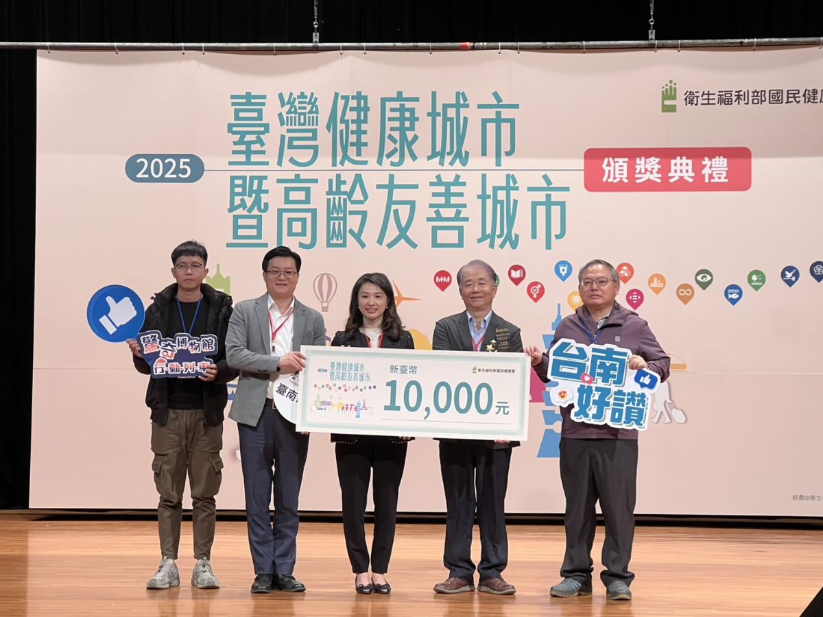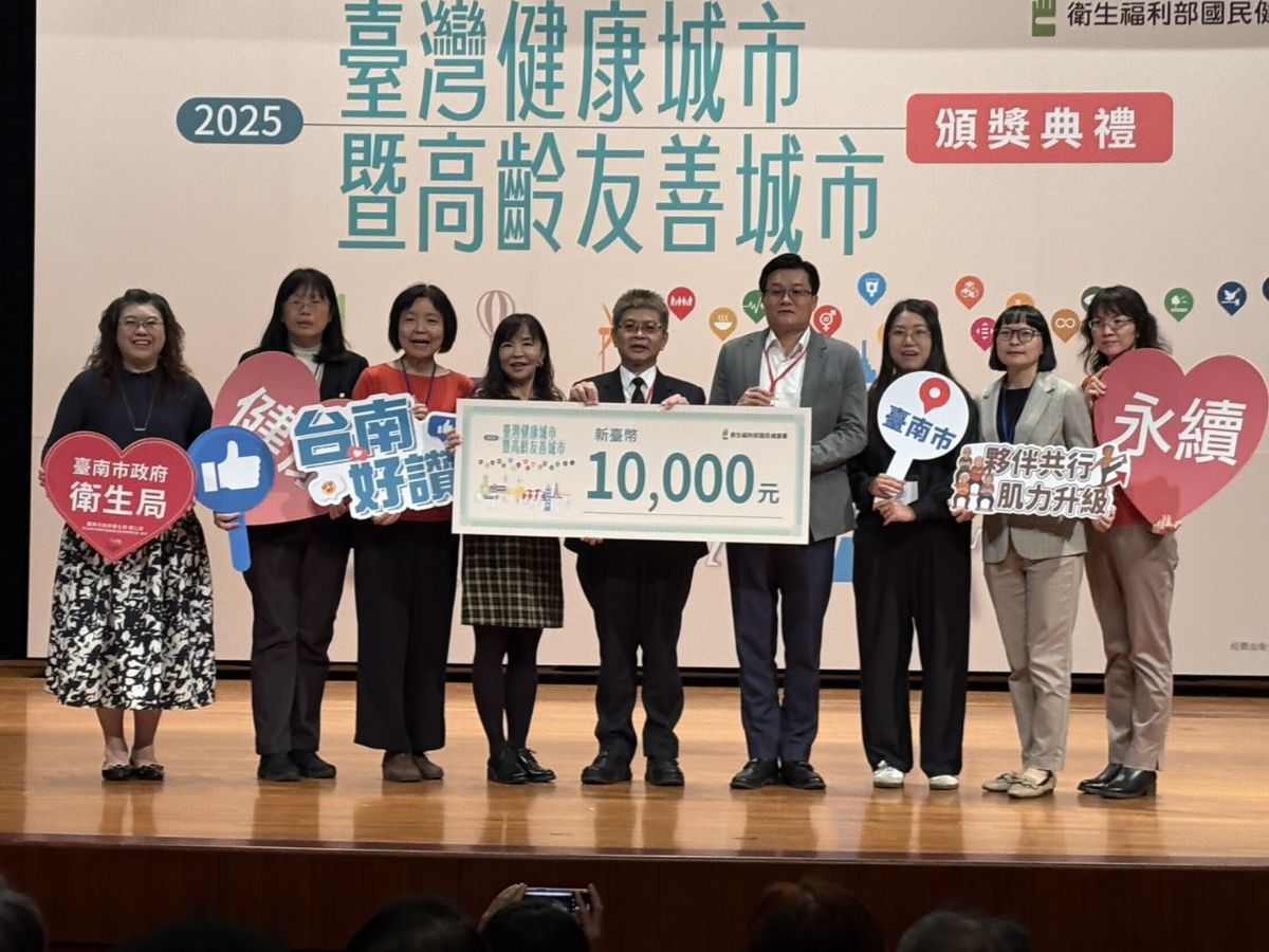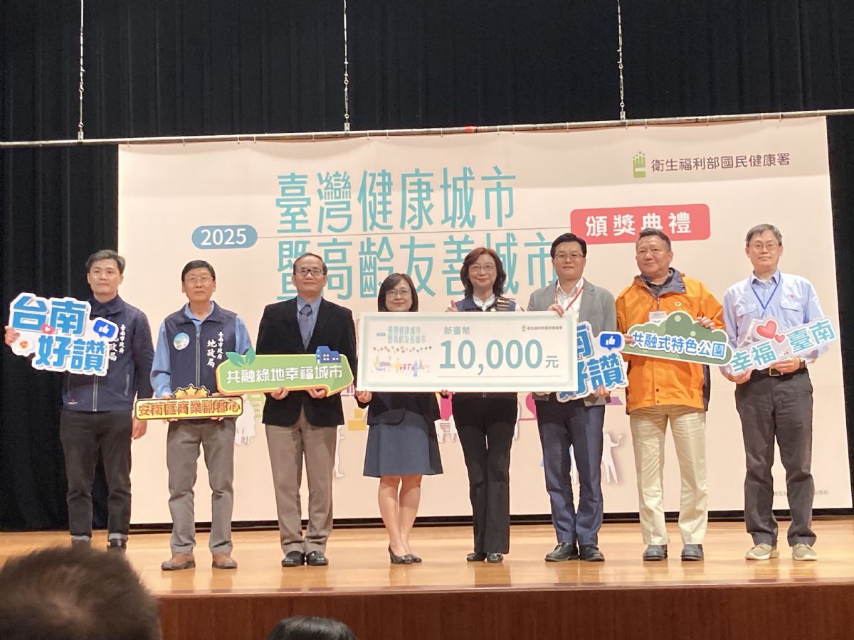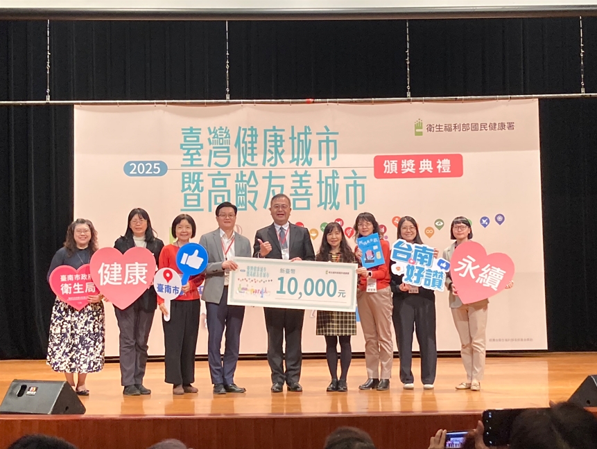 臺南再傳捷報!在衛福部國民健康署今(28)日舉辦的「114年全國健康城市暨高齡友善城市頒獎典禮」中,臺南市政府團隊一舉奪下8件獎項,不僅獲獎數名列全國前茅,更獲評審一致讚賞,展現臺南在推動健康與永續城市上的亮眼成果。徐副秘書長健麟親率團隊北上領獎,他表示:「這份榮耀屬於每一位臺南市民!」